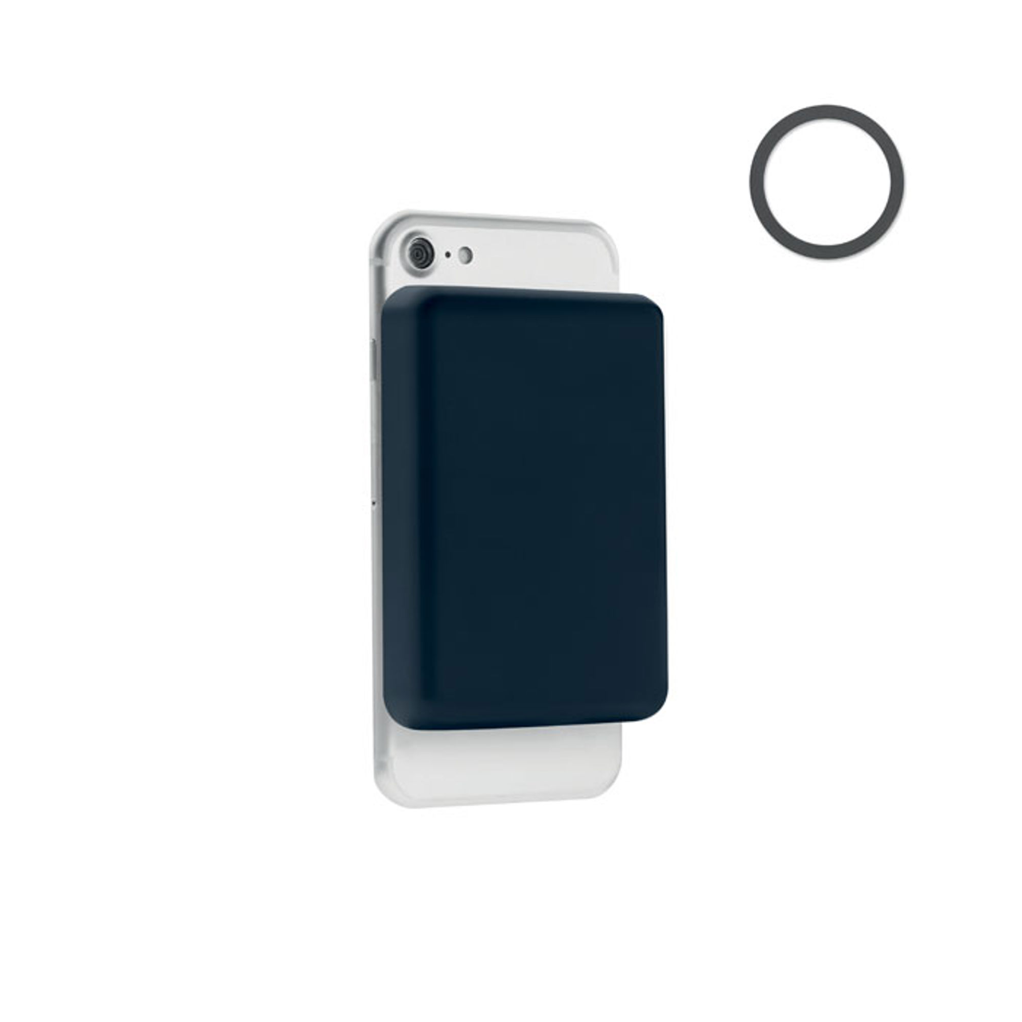 Magnetisk trådlös laddare (15 W) och powerbank (5000 mAh). Utgång: Uteffekt: DC 9V/1,1A (18W) idealisk för snabbladdning. Kompatibel med iPhone®X, 8 , Samsung 7 och nyare. Fungerar med alla enheter som har Qi-laddning. Inkluderar ytterligare magnetisk metallring för att stödja laddning av andra icke-magnetiska trådlöst laddningsbara telefoner. In/utgång: Typ-C