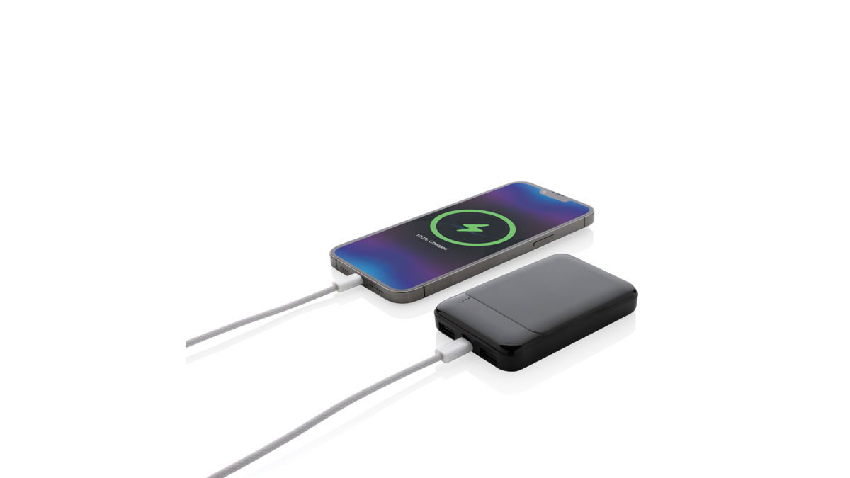 5.000 mAh powerbank i fickstorlek där höljet är tillverkat av RCS-certifierad återvunnen ABS-plast. RCS (Recycled Claim Standard) är en standard för att verifiera det återvunna innehållet i en produkt genom hela leveranskedjan. Totalt återvunnet innehåll: 30 % baserat på total produktvikt. Med en fulladdad powerbank kan du ladda din mobil upp till två gånger. Powerbanken innehåller ett långvarigt 5.000 mAh litiumpolymerbatteri av klass A med hög densitet och lång livslängd. Strömindikatorerna visar den återstående energinivån så att du alltid vet när du ska ladda om. Micro USB-input 5V/2A; Type-C-input 5V/2,4A; USB-output 5V/2,4A, Type C-output: 5V/2A Produkt och tillbehör är PVC-fria. RCS-certifierad laddningskabel av återvunnen TPE medföljer. Förpackad i FSC®-mixförpackning.