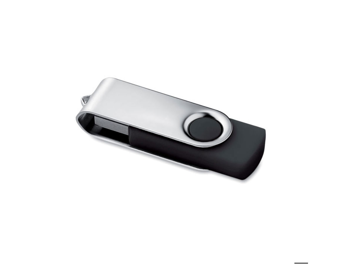 4GB USB 2.0 minne med skyddande metallhölje. Rotera höljet och anslut det i en USB port för att använda det.