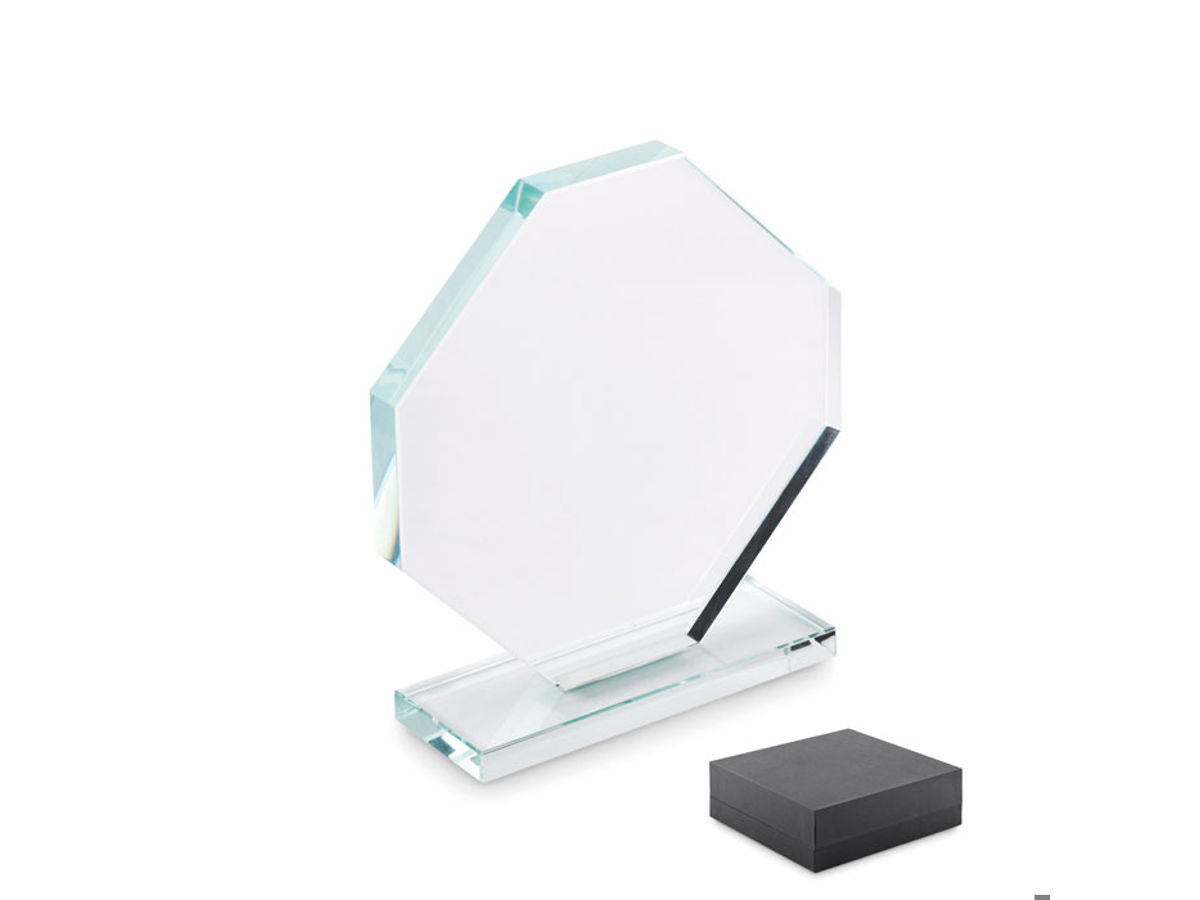 Pris eller trofé i kristall. Presenteras i presentförpackning.