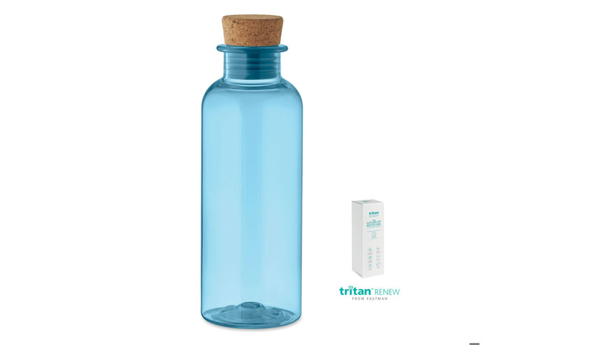 Dricksflaska i Tritan Renew™ med korklock. Kapacitet: 500 ml. Denna produkt är framställd av 50 % plastavfall med hjälp av ISCC-certifierad massbalans.