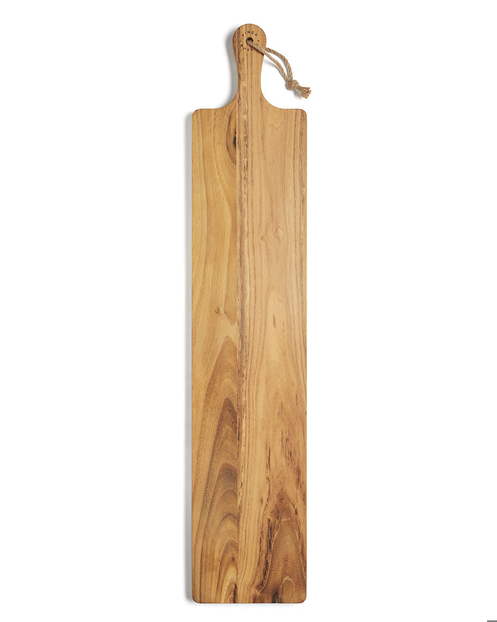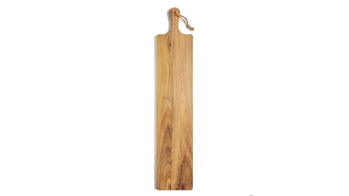 Robust och mycket användbar skär-/serveringsbräda som med sin längd på 75 cm och bredd på 15 cm ger en stor yta att skära eller servera på. Skärbrädan är gjord av FSC®-certifierad teak och har en vacker gyllene till mellanbrun tränyans, som blir mörkare över tid. Brädan är försedd med ett stabilt och bra handtag som gör den enkel att förflytta. Den har även ett rikligt oljeinnehåll, vilket gör den väl skyddad mot röta.