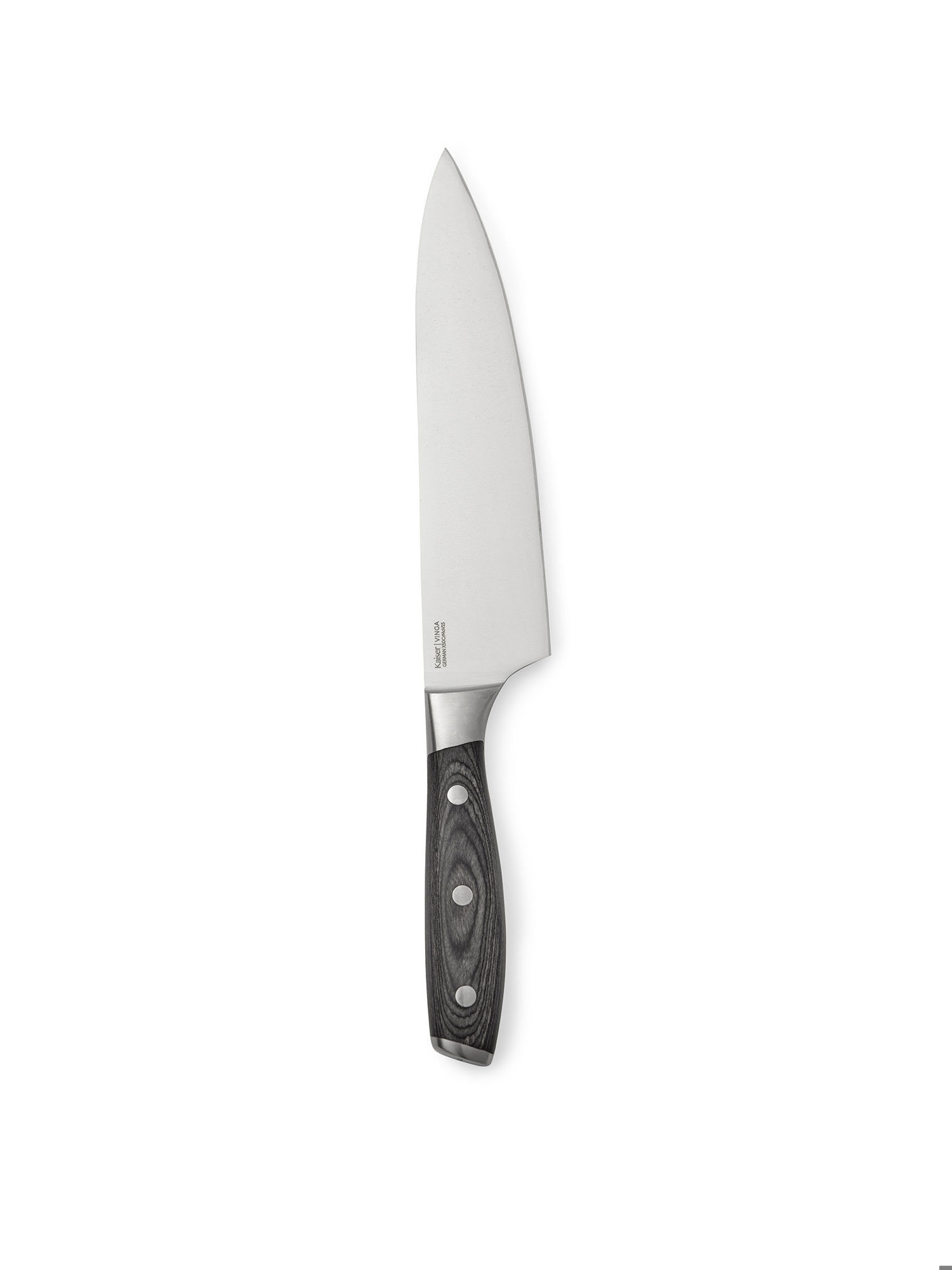 Exklusiv kockkniv från Kaiserserien. Stålet är noga utvalt från Tyskland, X50CrMoV15 och handtaget är av pakkaträ. Handtaget är greppvänligt vilket tillsammans med dess välbalanserade kropp från ände till egg gör den skönare och lättare att arbeta med. Det tyska stålets goda egenskaper gör att knivarna både blir fläckbeständiga och ställer inte heller höga krav på skötsel mer än slipning. Dess skärpa håller sig länge och när man väl behöver slipa dem så är det en enkel uppgift. Storlek: 30x3x1, Färg: Grå, Material: Stål X50CrMoV15 / Handtag: Pakkaträ