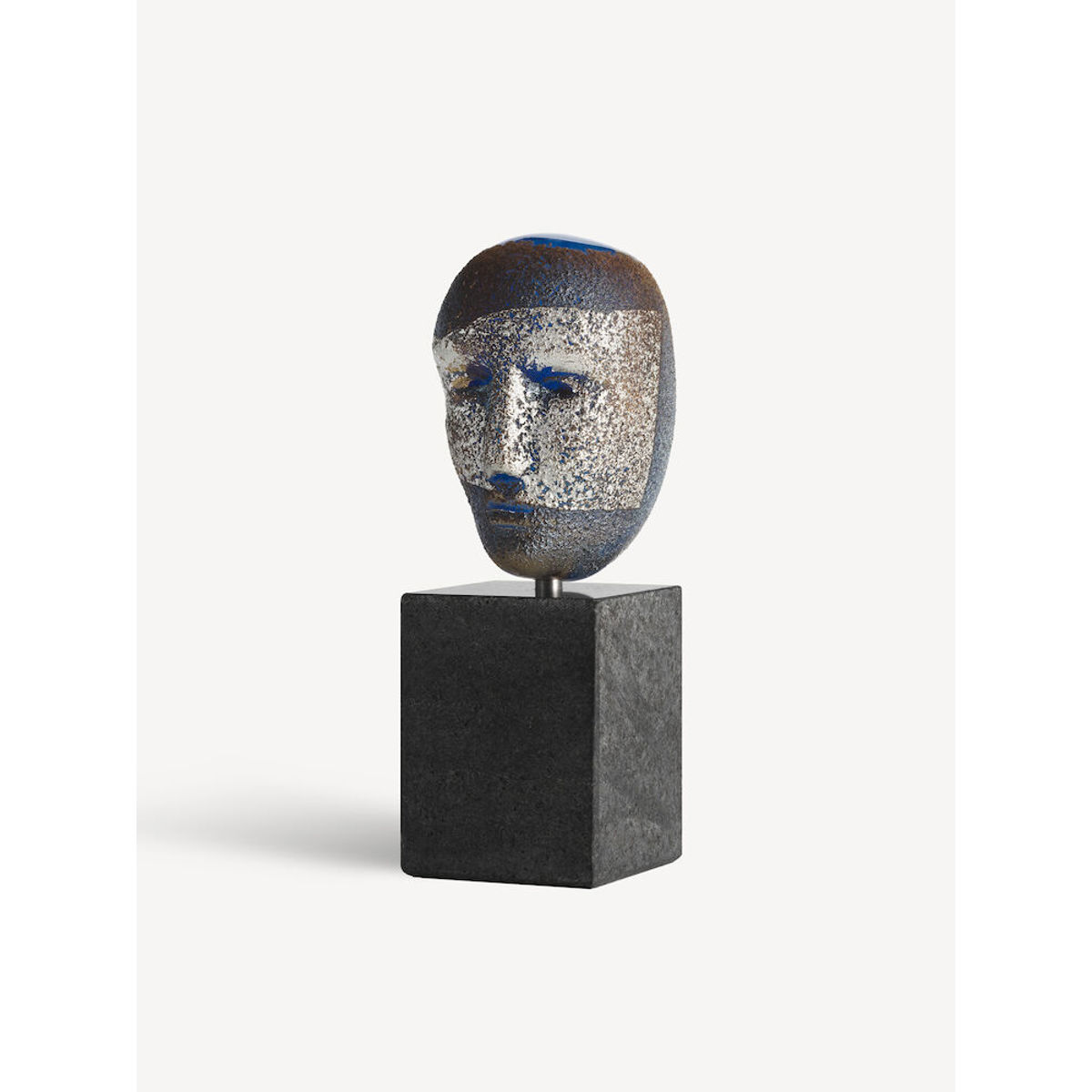 Brains on stone Freja, i limiterad upplaga, är ett klassiskt Bertil Vallien objekt, vilande på en sockel i sten. Objektet från Kosta Boda Artist Collection pressas i form på Kosta Glasbruk och färgas med färgmjöl på utsidan av det klara glaset, samt dekoreras med äkta bladsilver.