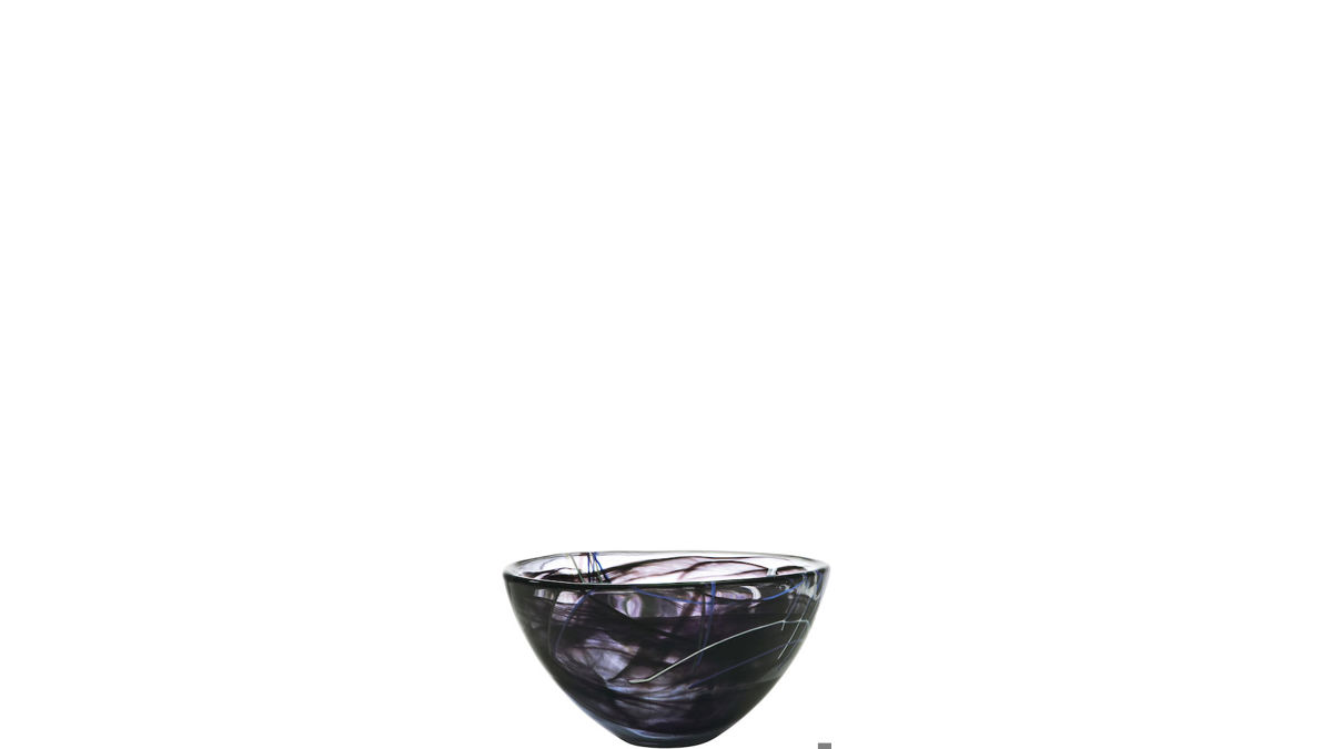 Contrast från Kosta Boda tillverkas med en teknik som heter centrifugering, vilket skapar slöjor av färg inuti glasmassan. I kombination med färgade glaspinnar som adderas i processen, blir varje produkt unik. Den stora skålen är snygg i sig eller kanske som en fruktskål? Design Anna Ehrner.