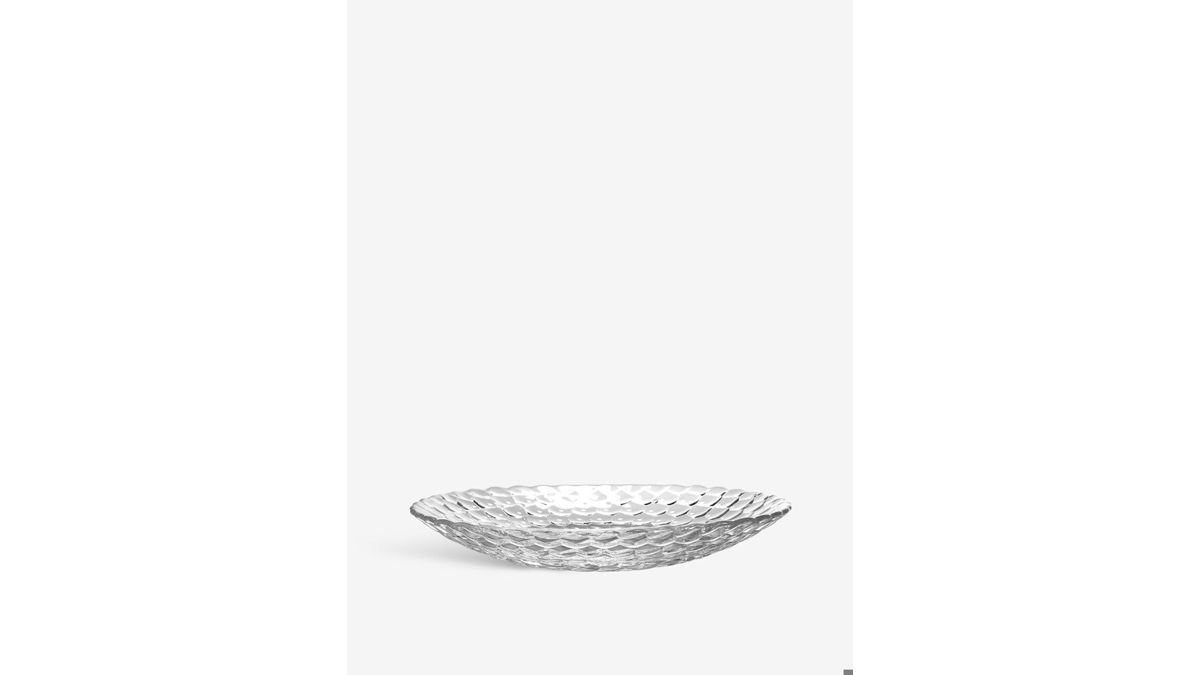 Fatet i serien Hallon har en design likt ett hallonbär med sitt mönster av runda kulor. Orrefors fat i klar kristall passar utmärkt som uppläggningsfat. Formgiven av Anne Nilsson.