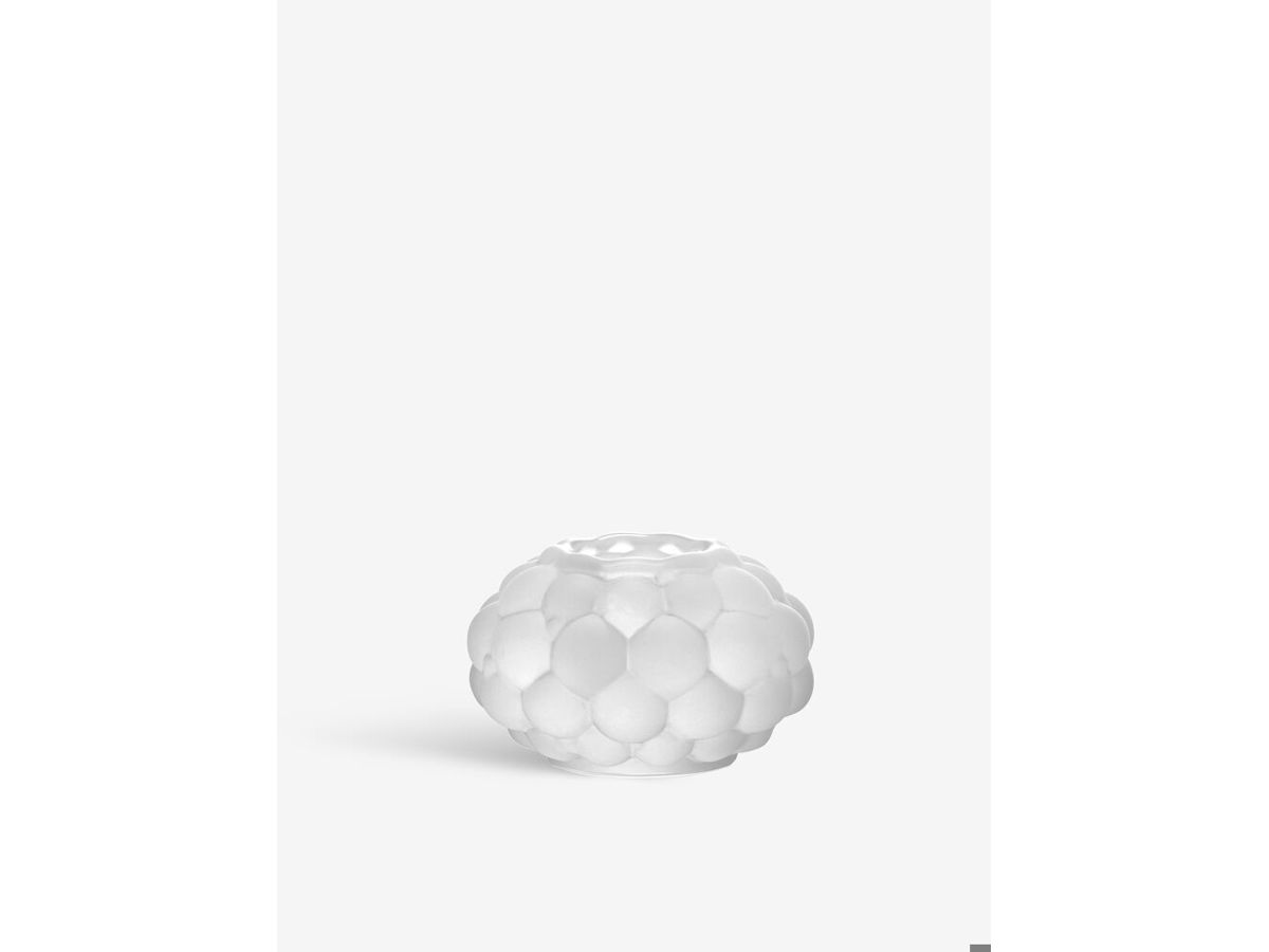 Ljuslyktan i serien Hallon har en design likt ett hallonbär med sitt mönster av runda kulor. Ljuslyktan från Orrefors är formgiven av Anne Nilsson.