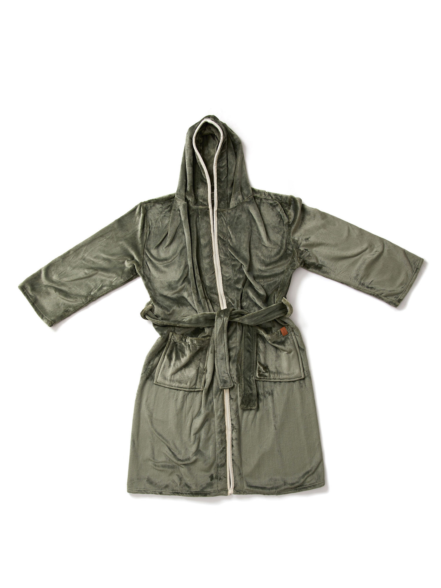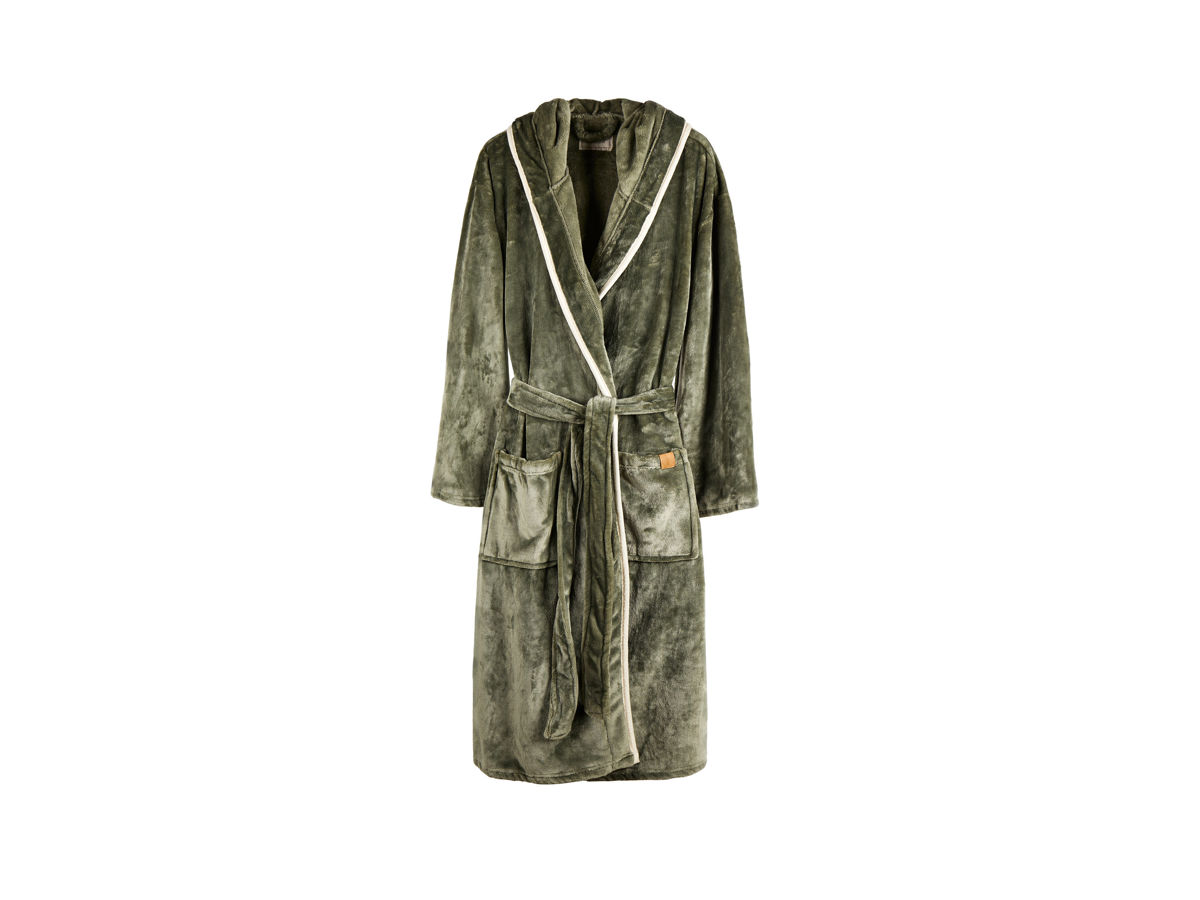 Mysig och mjuk morgonrock i luxury plush med stor huva och dekorativ piping. Två fickor framtill och skärp i midjan. Morgonrocken är tillverkad av 68 % verifierat återvunna material. Vi gillar inte att transportera luft, därför har vi valt att vakuumpacka denna morgonrock för att minska klimatavtrycket. Tillverkad av GRS (Global Recycled Standard). GRS-certifiering säkerställer att hela leveranskedjan av de återvunna materialen är certifierade. Totalt återvunnet innehåll är baserat på den totala produktvikten. Storlek S/M. OEKO-TEX® STANDARD 100. 19.HCN.76049. Hohenstein HTTI.