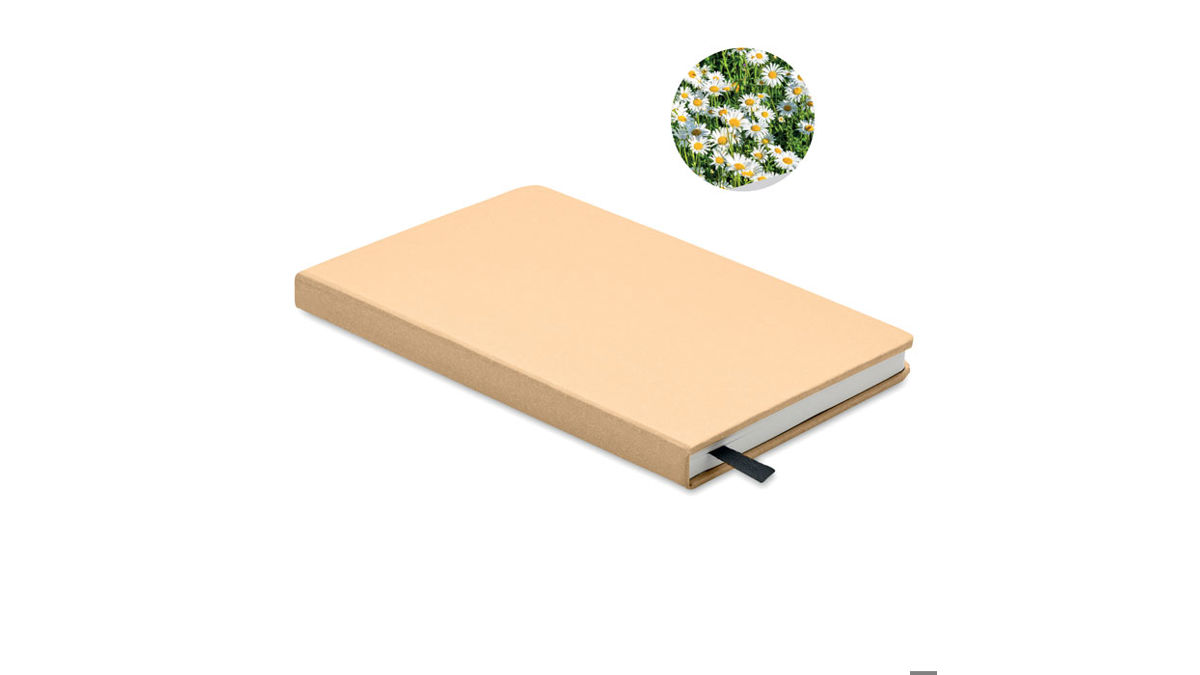 A5-anteckningsbok med hållbara hårda pärmar i samt inbunden med 184st Linjerade sidor (92 ark) av återvunnet papper. Sidmarkör i bomull. Innehåller frön på insidan pärmen som kan planteras . Varje färg på anteckningsboken kommer med olika typ av frö som du kan plantera i din trädgård. Denna anteckningsbok har en låg miljöpåverkan och är en fantastisk kampanjprodukt. Färgkoden anger typen av frö: Blåbär (04), Jordgubb (05), vit prästkrage (13), äpple (48) och tall (60). Tillverkad i EU FSC®-certified | FSC MIX/FSC RECYCLED, P7.1, FSC-C213206