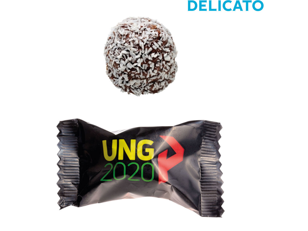 Liten chokladboll från Delicato med eget tryck på omslaget. På nedanstående priser tillkommer startkostnad för tryck.