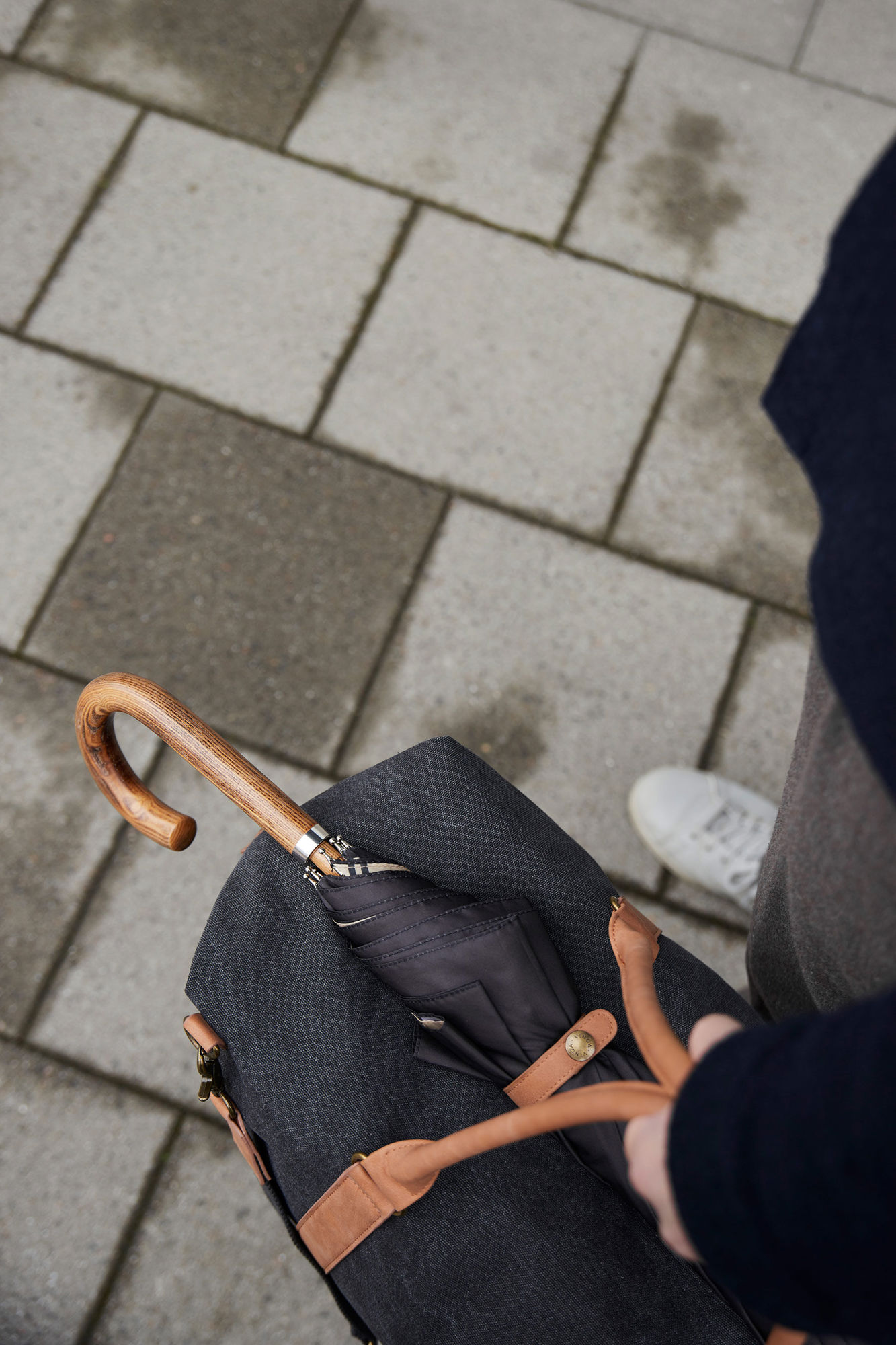 Håll dig torr med stil med vårt klassiska och diskreta paraply på 23 tum. Det dubbla lagret av 190T-tyg av återvunnen PET erbjuder bra skydd mot regn, medan det fina innerfodret adderar en touch av elegans till designen. Paraplyet har stänger och ram av glasfiber, vilket garanterar hög hållbarhet och lång livslängd. Paraplyhandtaget är tillverkat av kompositträ, vilket ger paraplyet ett sofistikerat utseende. Paraplyet innehåller spårningsteknik från AWARE™ som garanterar användning av äkta återvunnet material och som understryker vårt löfte att göra våra inköp från hållbara källor. Förpackningen består av FSC®-certifierat material. 2 % av intäkterna från varje såld Impact-produkt kommer att doneras till Water.org