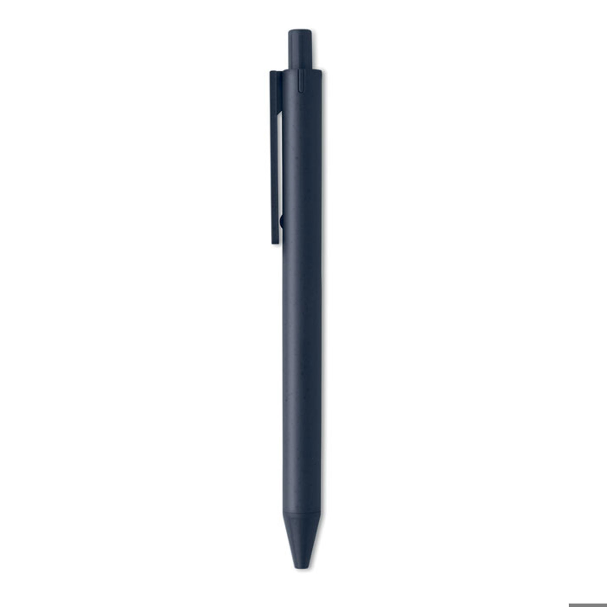 Penna i miljövänligare material. Vete-halm 50% och PP plast 50% (blått bläck).