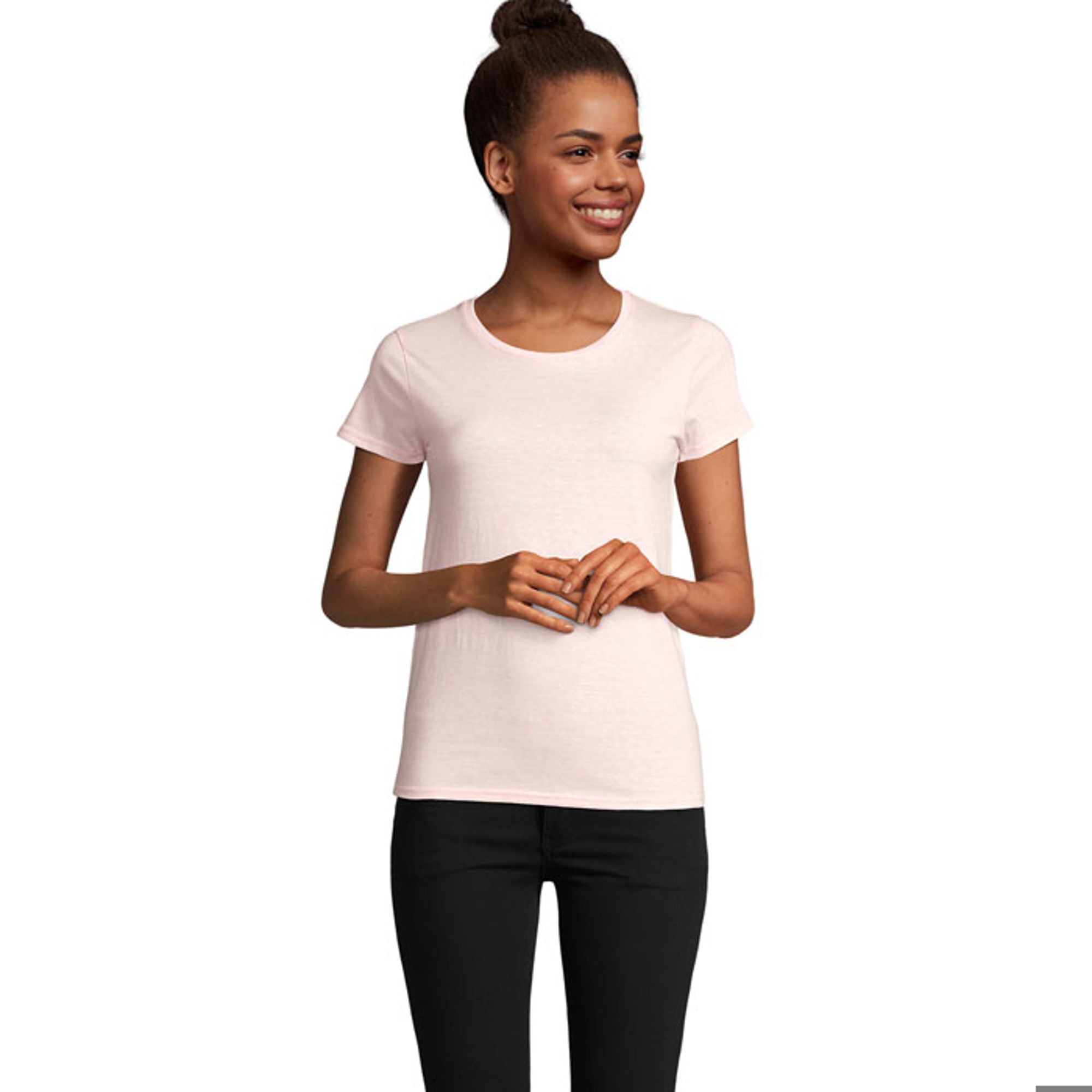 SOL´S CRUSADER DAM, RUNDHALSAD, FIGURNÄRA JERSEY-T-SHIRT FÖR DAMER, 100 % ekologiskt odlad bomull, Naturlig finish för en mjukare och jämnare känsla JERSEY 150, Ribbad krage i 100 % bomull, Rund halsringning, Halstejp, Kroppsnära skärning, Rundstickad, (1) Ljusgrönmelerad : 60 % ekologisk bomull / 40 % återvunnen polyester, (2) Rosamelerad : 60 % ekologisk bomull / 40 % återvunnen polyester, (3) Beigemelerad : 60 % ekologisk bomull / 40 % återvunnen polyester, (4) Askgrå : 98 % ekologisk bomull / 2 % viskos, (5) Gråmelerad : 85 % ekologisk bomull / 15 % viskos för matchande storlekar, se storlekstabellen i avsnittet om produktdokumentation.