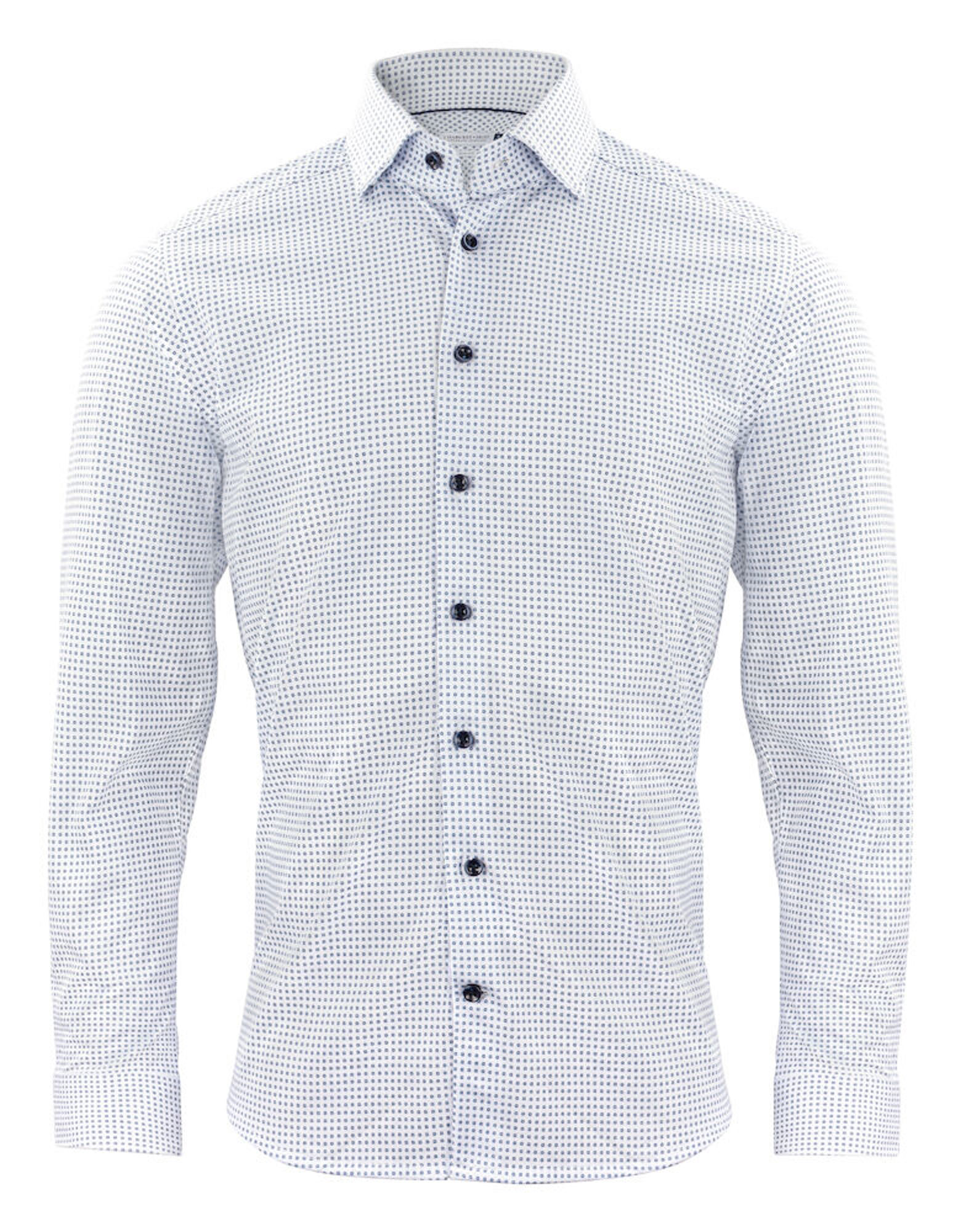 En stickad skjorta som finns i tre stiliga och moderna tryck. Stickad med högkvalitativ långfibrig bomull för mjukhet och komfort. Med denna skjorta är du välklädd trots känslan av att bära en pyjamas. Dold Button Down.