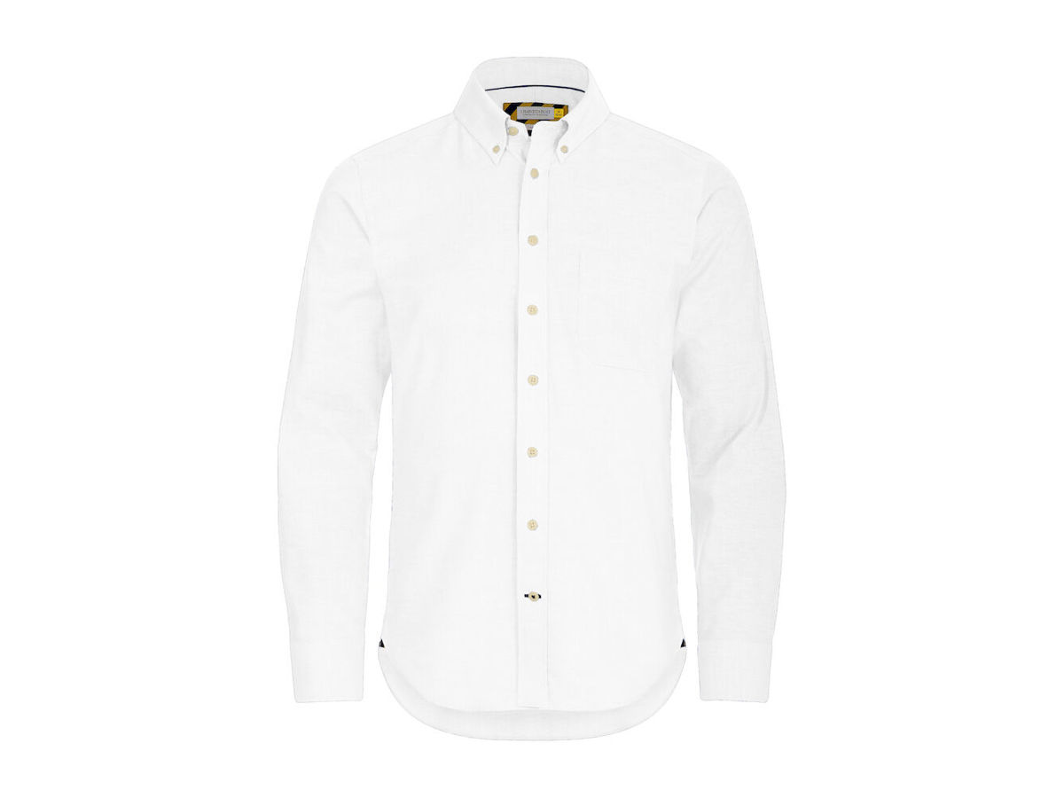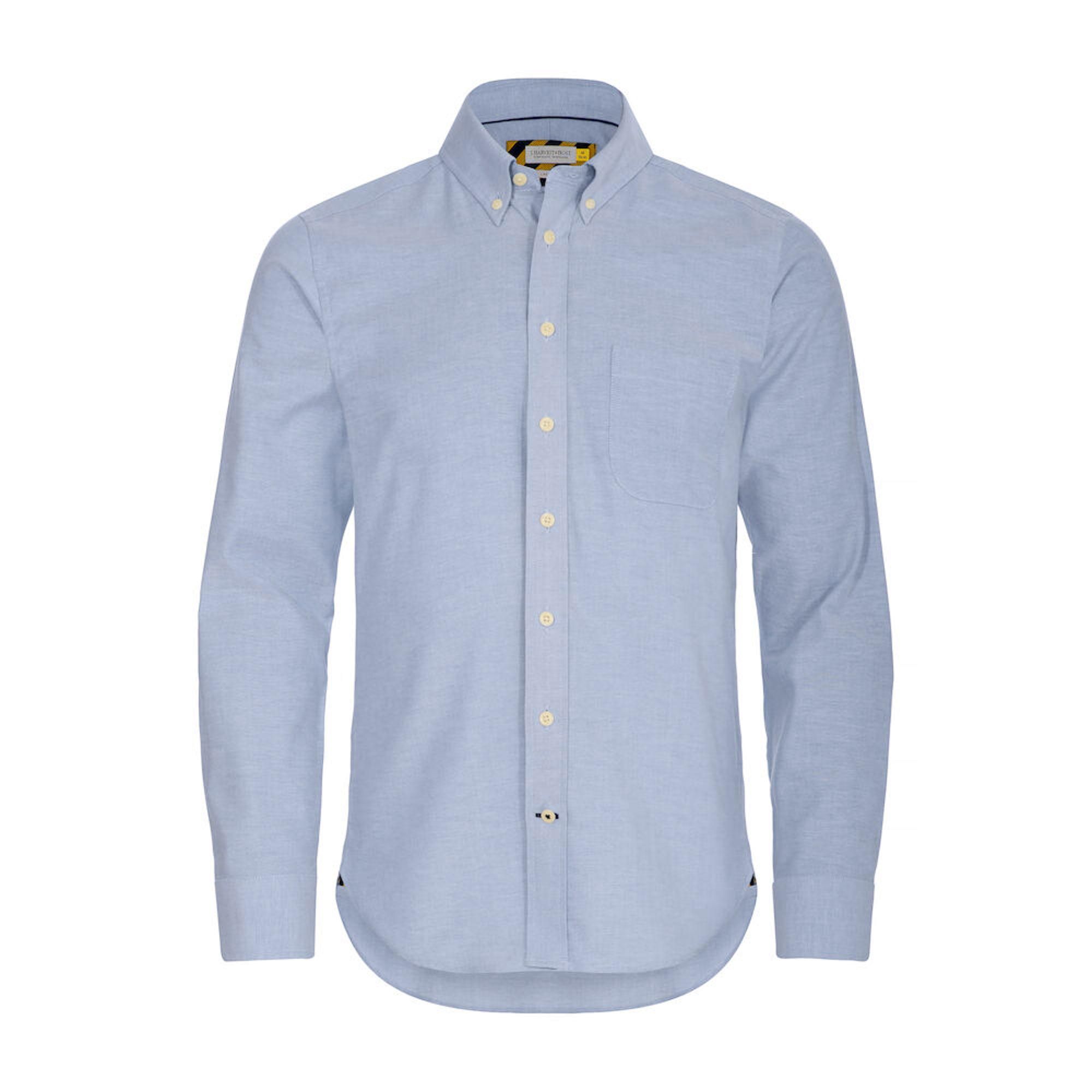 Den här Oxfordskjortan är en ny version av vår klassiska Indigo Bow 30. Den har samma klassiska utseende, men är ny på många andra sätt. Tyget är en blandning av Long-staple bomull, Lyocell och Elastan. Materialblandningen ger skjortan en otroligt bra funktion och prestanda. Lyxig handkänsla från lyocellen och extrem stretchkomfort från elastan. Skjortan är easy-carebehandlad – tvätta, häng, använd. Denna skjorta är i casualmodell och tre centimeter kortare i kroppslängd än våra mer dressade skjortor. Bröstficka på herrmodellen.