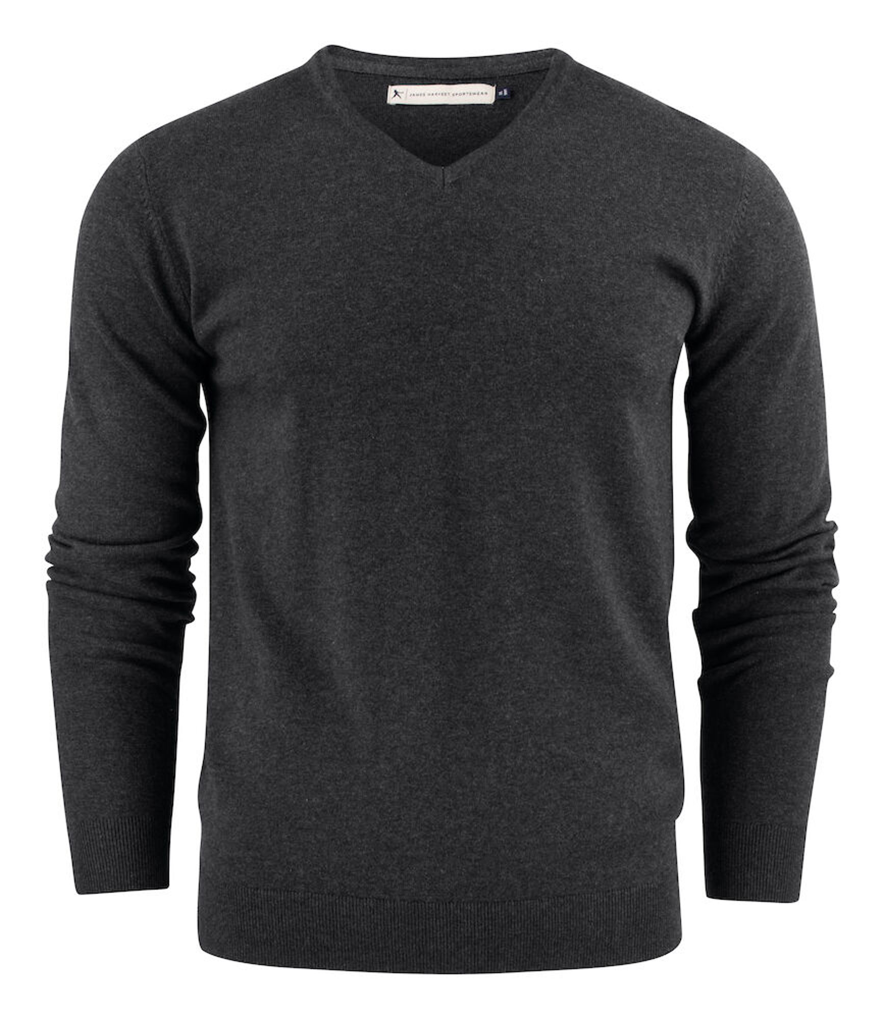 V-ringad finstickad tröja, 1 x 1 rib i nederkant och ärmavslut. Dubbelvikt slätstickad kant i V-ringningen.