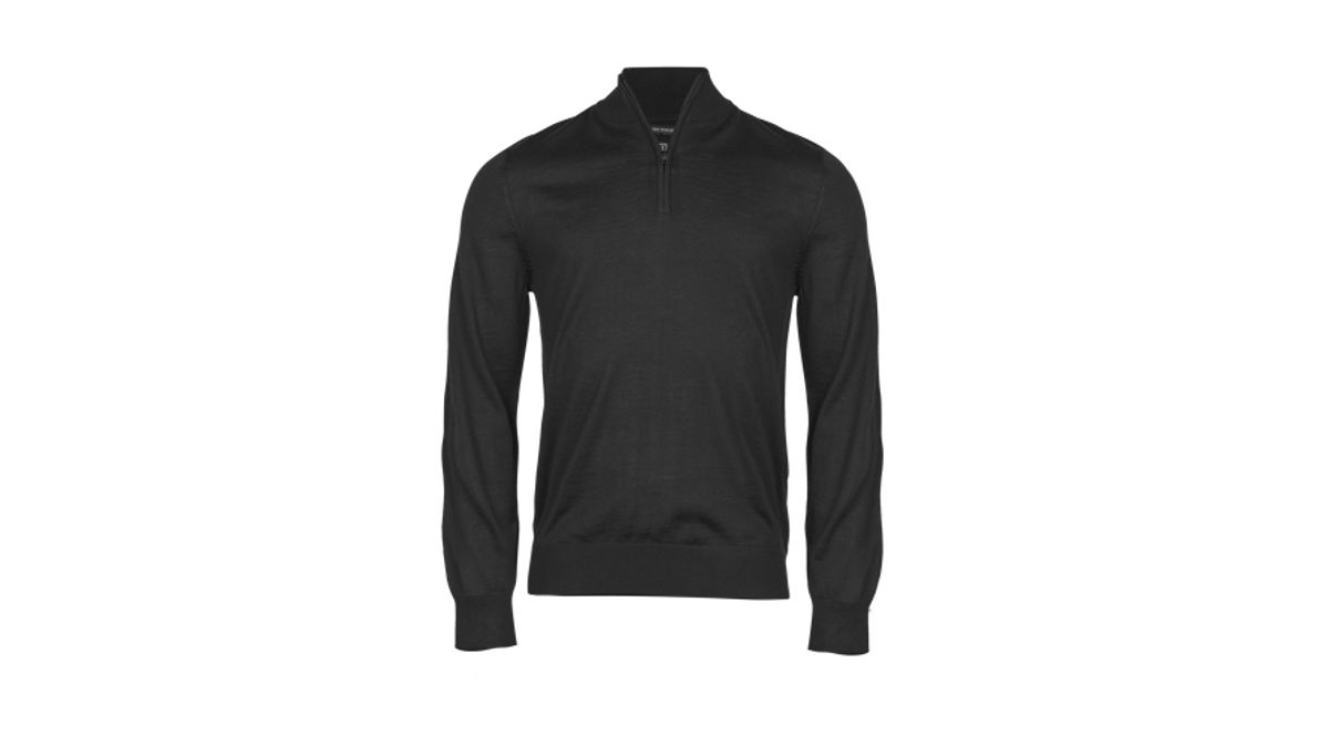 Denna stickade Half Zip är gjord av en italiensk premium merino-och polyakrylblandning. Den enkla och eleganta designen gör den perfekt i kombination med en skjorta eller en cool t-shirt.