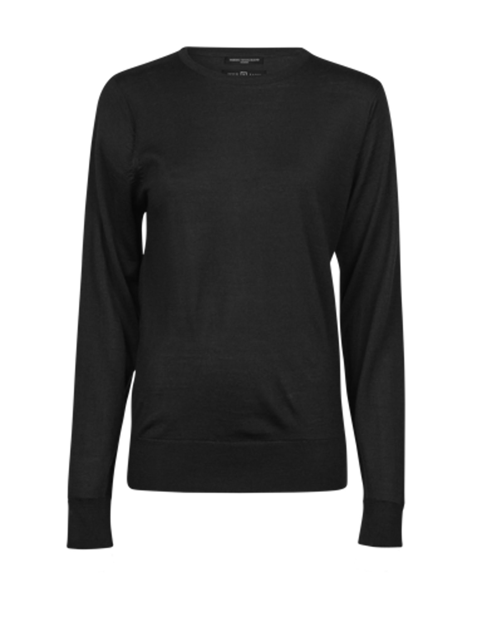 En klassisk stickad rundhalsad tröja för kvinnor, tillverkad i premium italiensk merino/polyakryl blandat garn. Ribbstickade detaljer vid nederkant och ärmslut. Perfekt i kombination med någon av våra kvalitetsskjortor eller en cool T-shirt.
