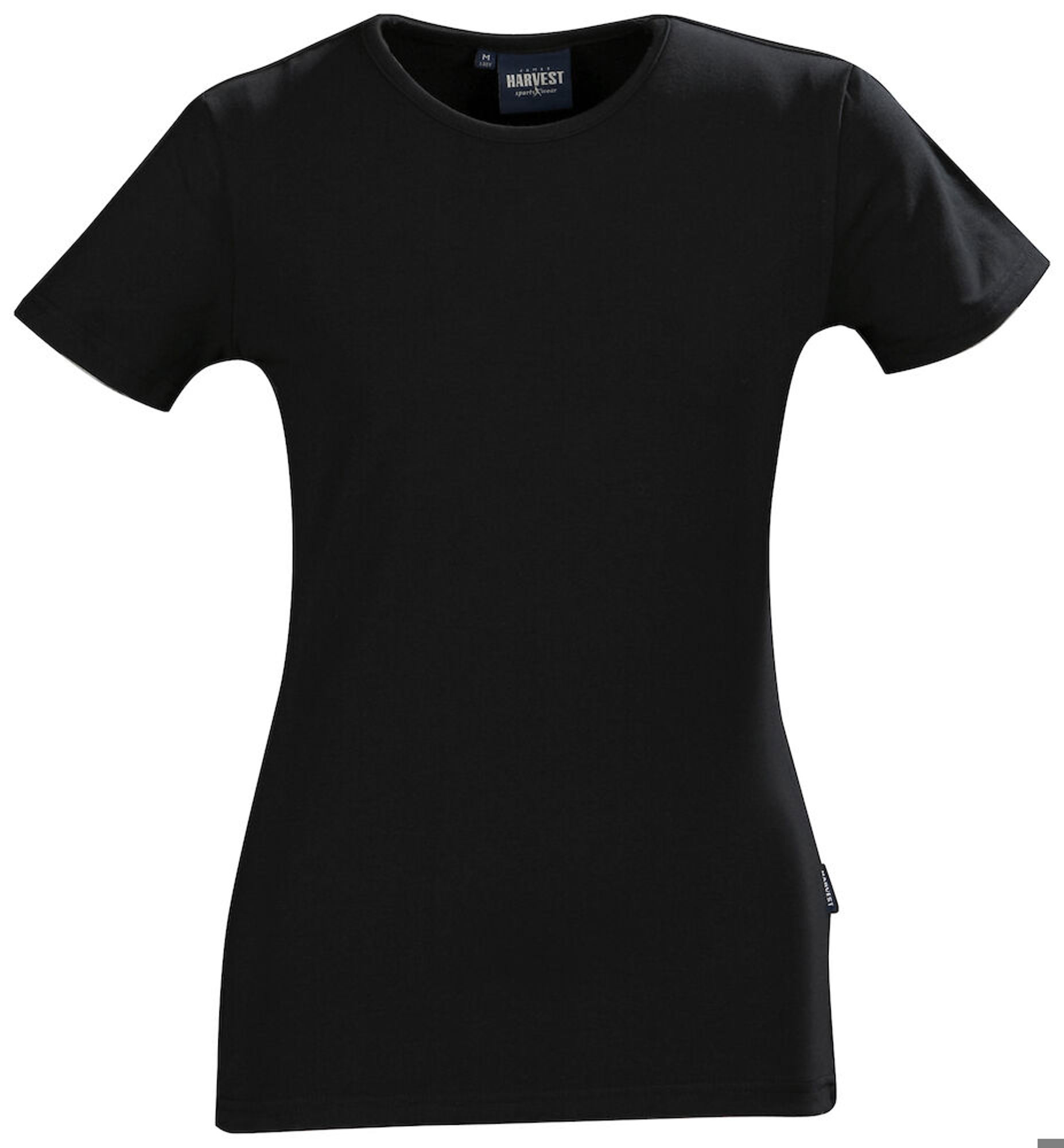 Kortärmad rundhalsad damtopp med figurnära skärning.