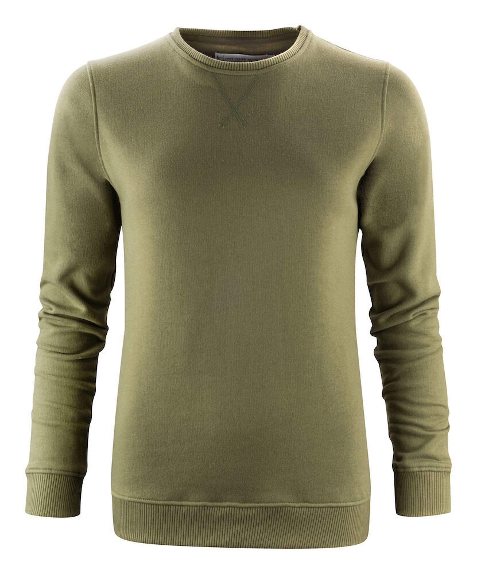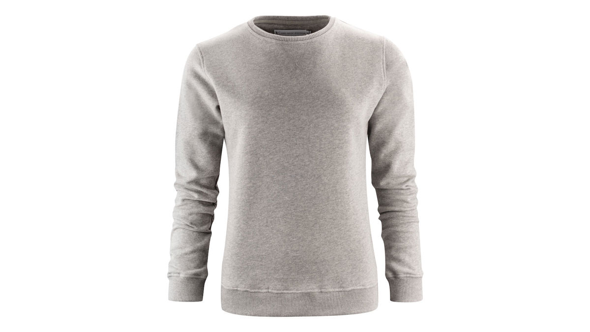Rundhalsad sweatshirt med halvmåne i nacken. Borstad på insidan. Ribbstickade muddar. Oeko-Tex, ekologisk bomull och återvunnen polyester.