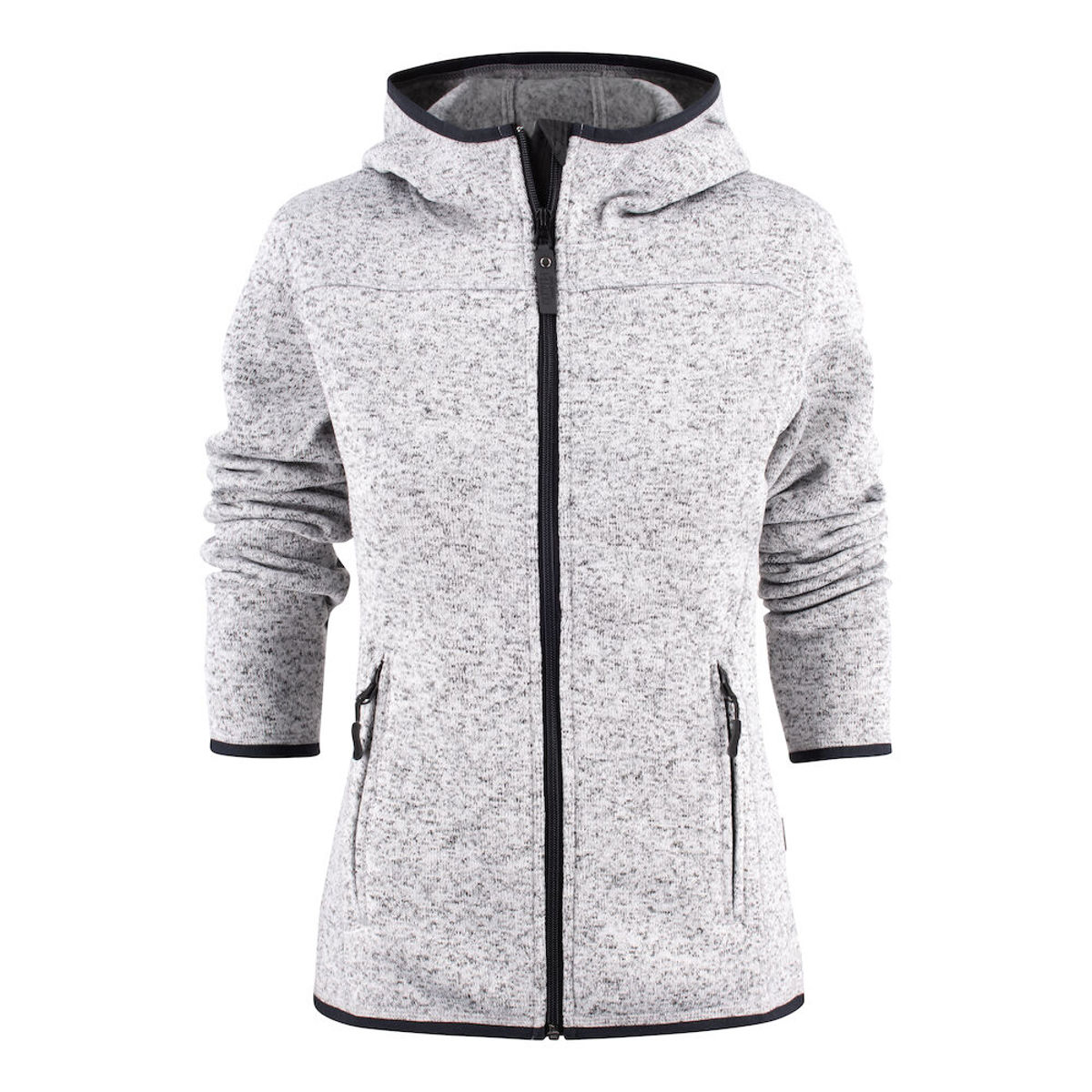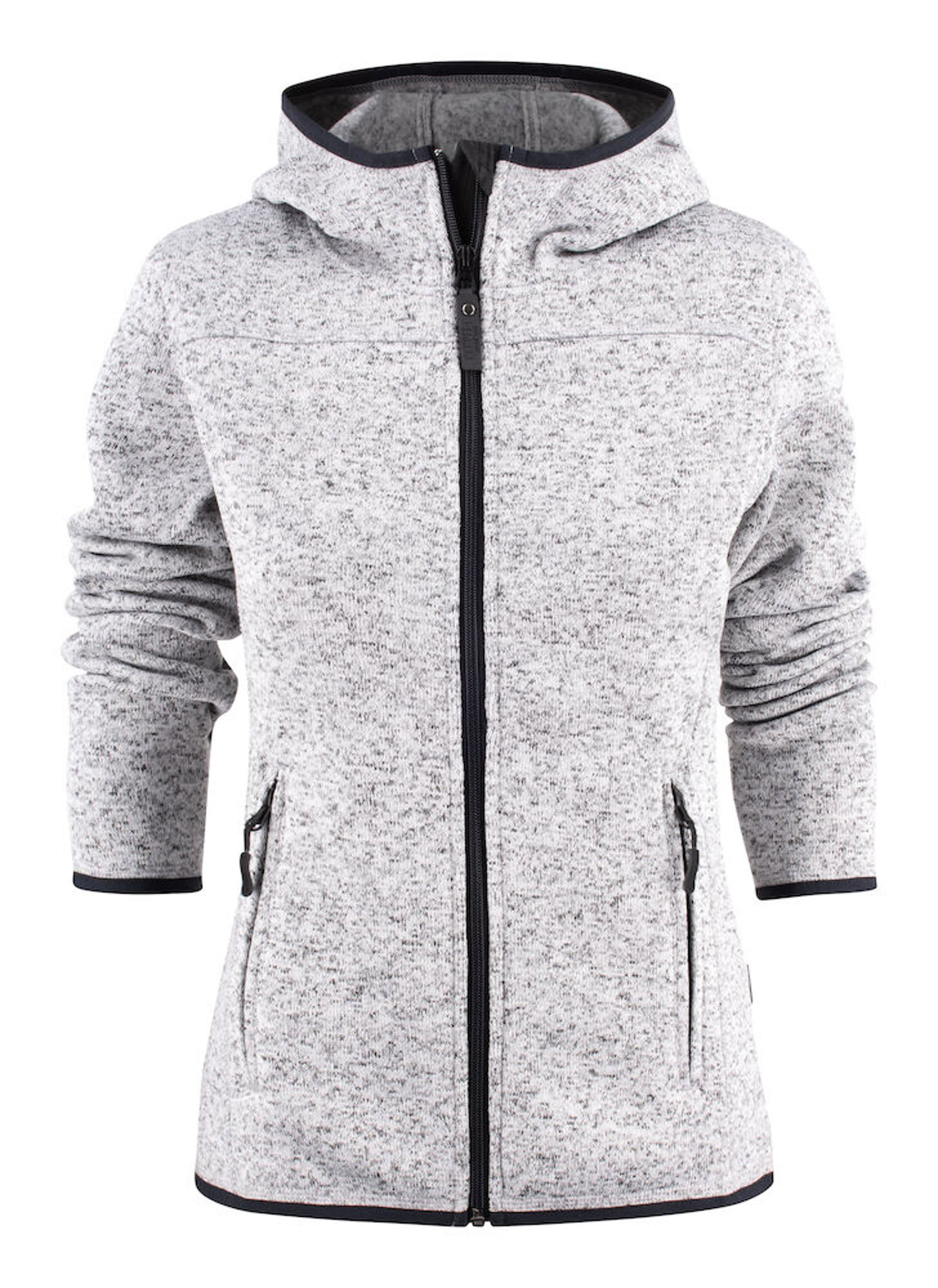 Grovstickad jacka med borstad insida. Dekorativa sömmar och elastiska kantband.
