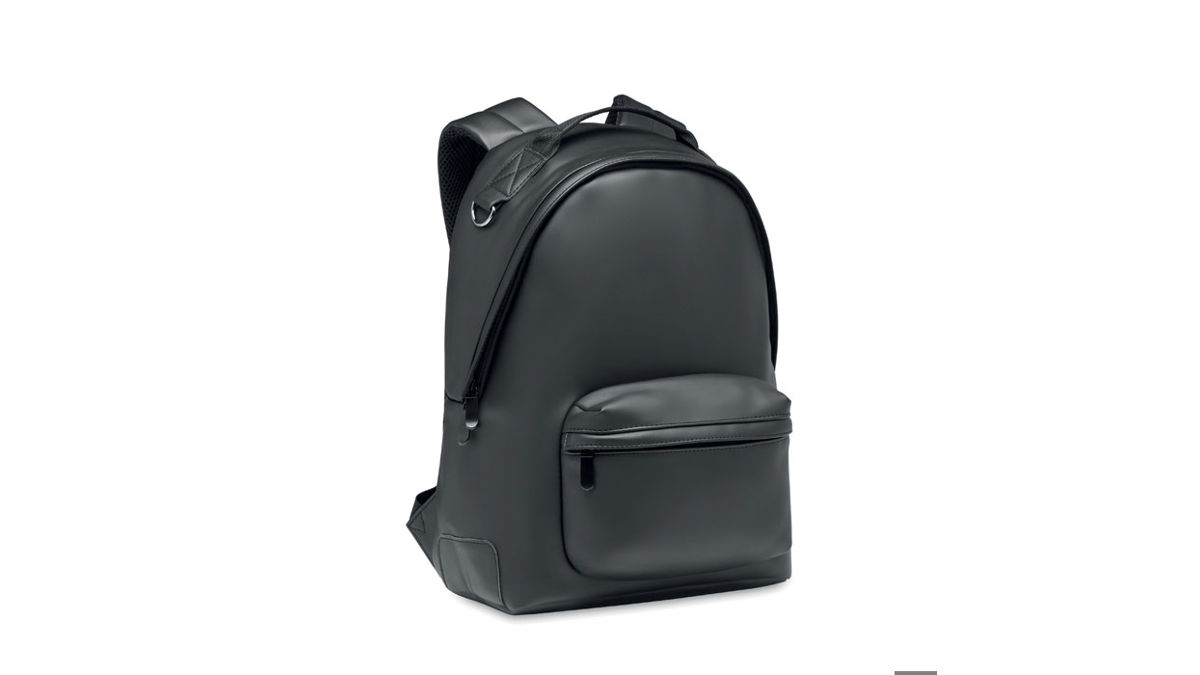 15 tums laptopryggsäck i mjuk PU med vadderad rygg och förstärkt botten. Ficka med dragkedja framtill. Fodret är 210D RPET.