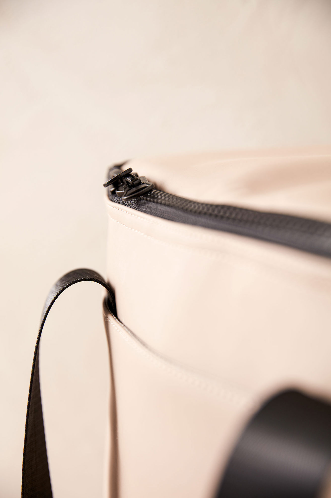 Minimalistisk kylväska tillverkad i vattenavvisande nubuck-PU. Långa handtag och en justerbar axelbandsrem för optimal komfort. Kylväskan är isolerad med extra tjockt skum och fodret på väskan är av så kallad PEVA som är enkel att hålla ren och fräsch. En kylväska som passar lika bra till stranden som till vildmarksäventyret.. Färg: Svart Strl: 32x22x34 cm Material: Polyester