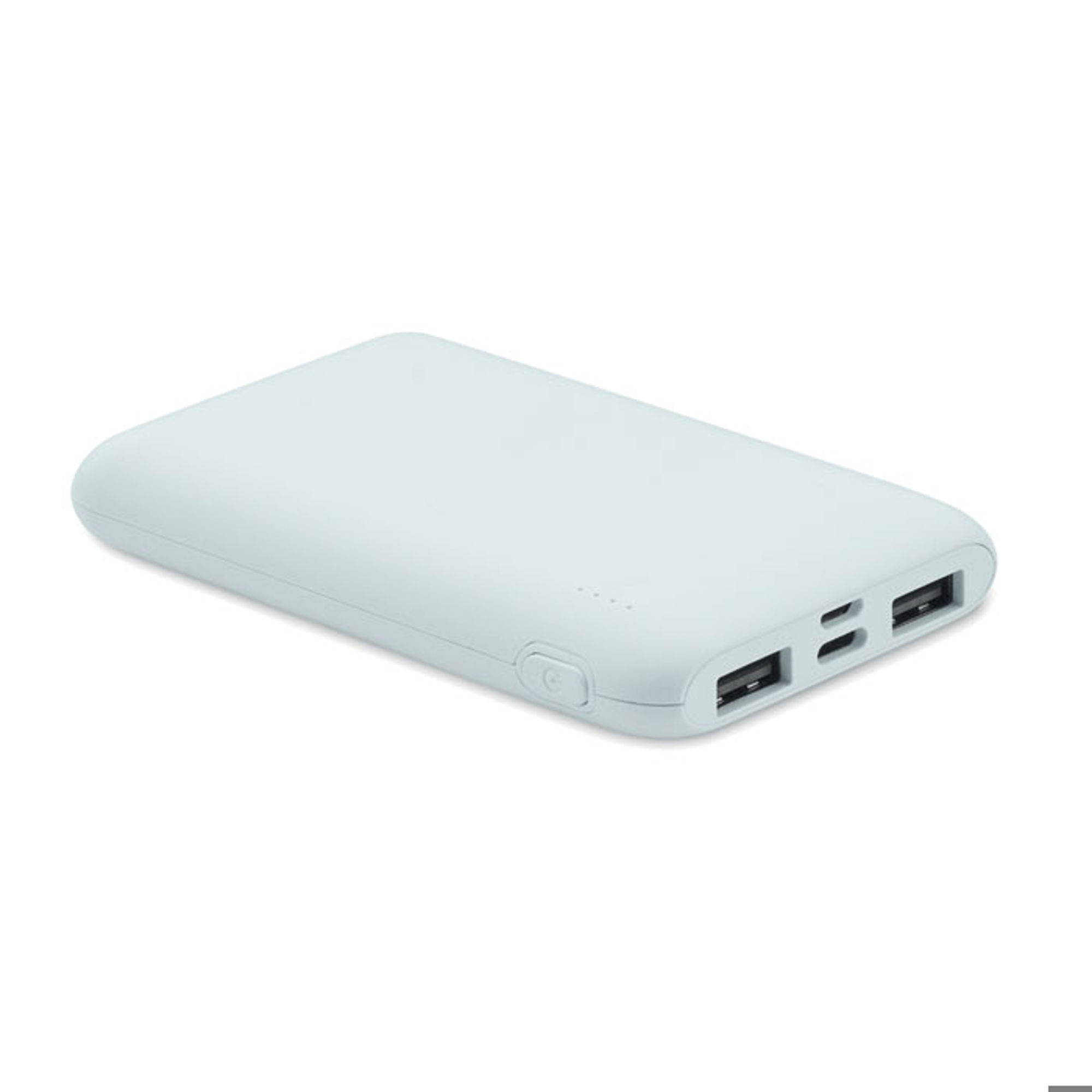 Powerbank 5000 mAh i återvunnen ABS. Uteffekt DC5V/2A, Utgång: 1 x Typ-C, 2 x Typ-A & 1 x Typ-B. Ingång: 2-i-1 typ C & typ A.
