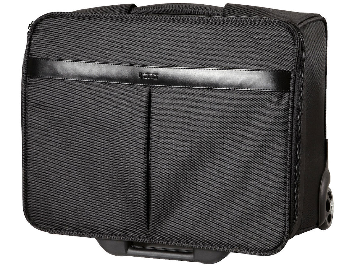 Trolley i kraftfull nylon. Dekorativ kant i PU med diskret logga. Rymligt packutrymme med elastiska remmar som håller packningen på plats. Innerficka i mesh samt lättillgänglig ytterficka med pennfack och mobilfack. Vadderad ficka för datorn medföljer. C:a mått: 42.5 x 22 x 32cm